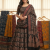 Paired with a solid-toned blouse and crafted from soft, breathable fabric, this timeless ensemble is perfect for festive occasions, daytime celebrations, and elegant ethnic styling.