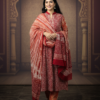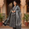 Elegant earthy brown kurta set featuring intricate traditional prints, paired with coordinated pants and a softly draped striped dupatta. Crafted from lightweight, breathable fabric, this graceful ensemble is perfect for festive occasions, cultural gatherings, and refined everyday ethnic wear.