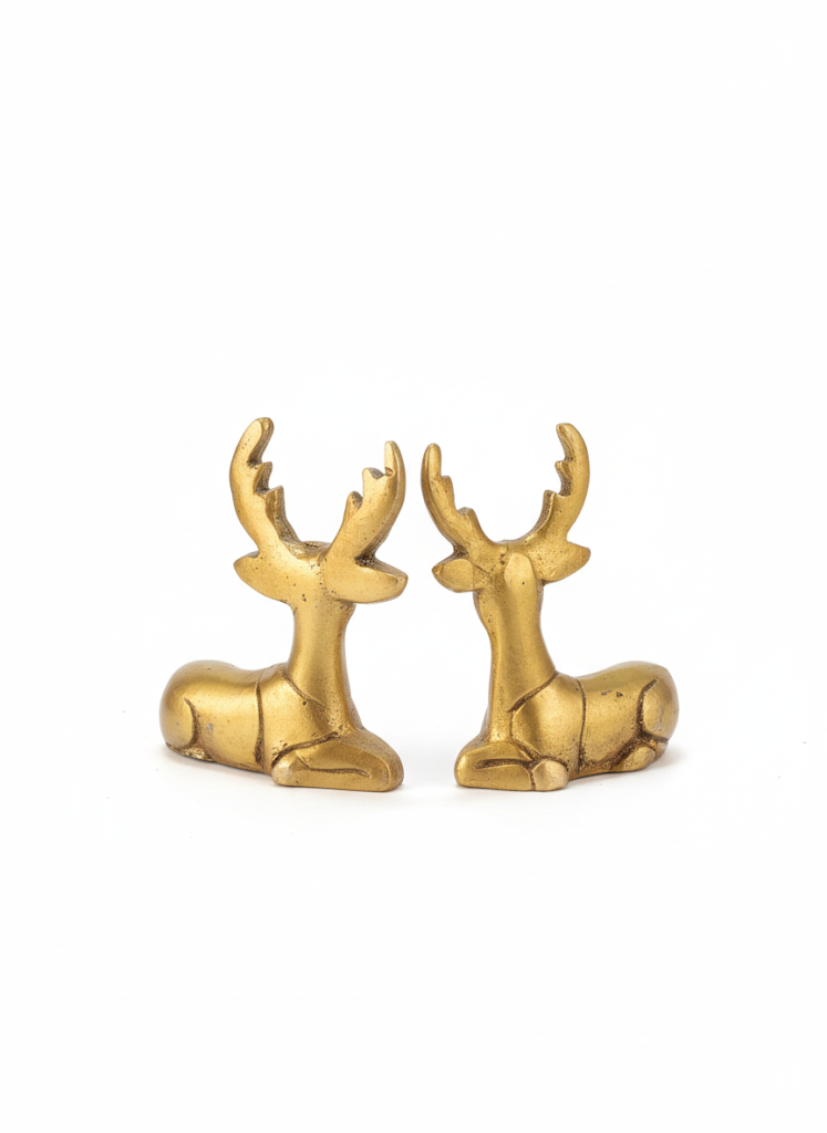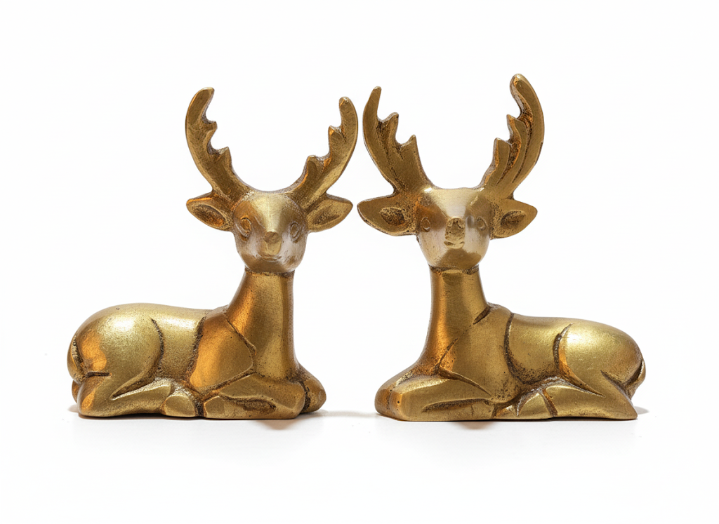 This charming pair of handcrafted brass resting deer figurines features smooth curves, delicate antlers, and a warm antique finish. Symbolizing peace, harmony, and elegance, these statues are perfect for home décor, shelves, consoles, or office spaces. Their calm posture and minimal design add a subtle, nature-inspired touch to any interior.