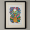 True to the Gond tradition, every element—from the elephant’s textured body to the individual pink and green leaves—is meticulously filled with signature decorative patterns of fine lines and dots. The contrast between the elephant’s warm golden and emerald tones against the intricately patterned, multi-colored tree creates a rhythmic sense of life and vitality. This painting serves as a stunning testament to the belief that every element of nature is inhabited by a spirit.